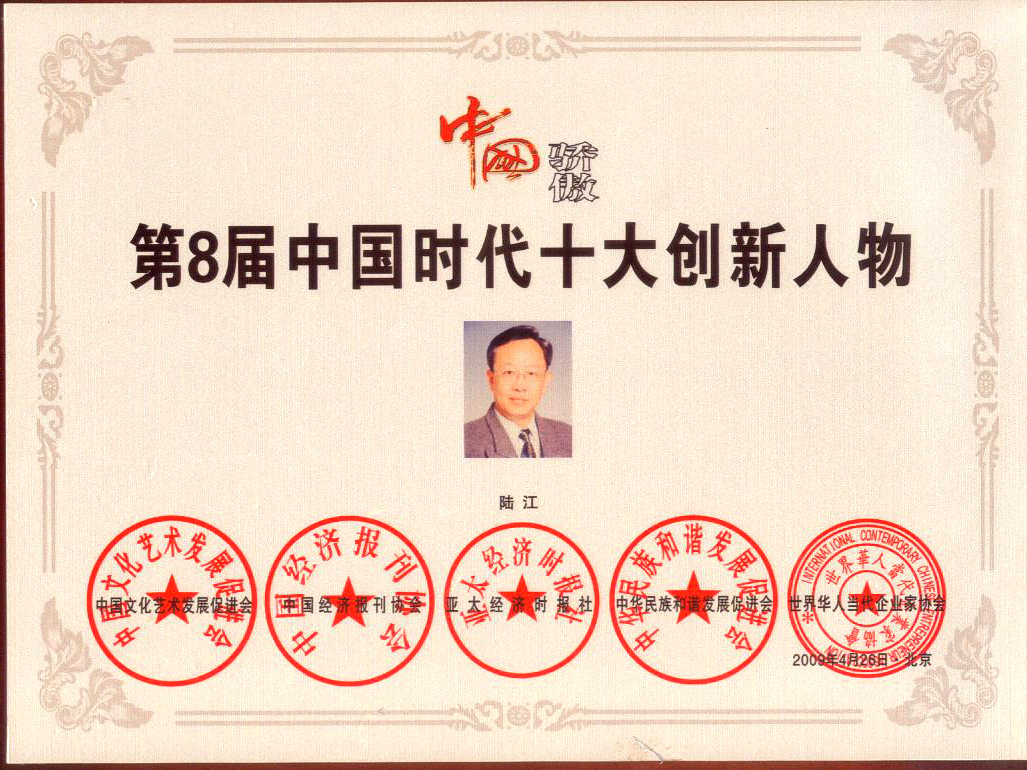 陸江的論文獲一等獎榮譽(yù)證書-- 陸江論文獲創(chuàng)新論文獎牌